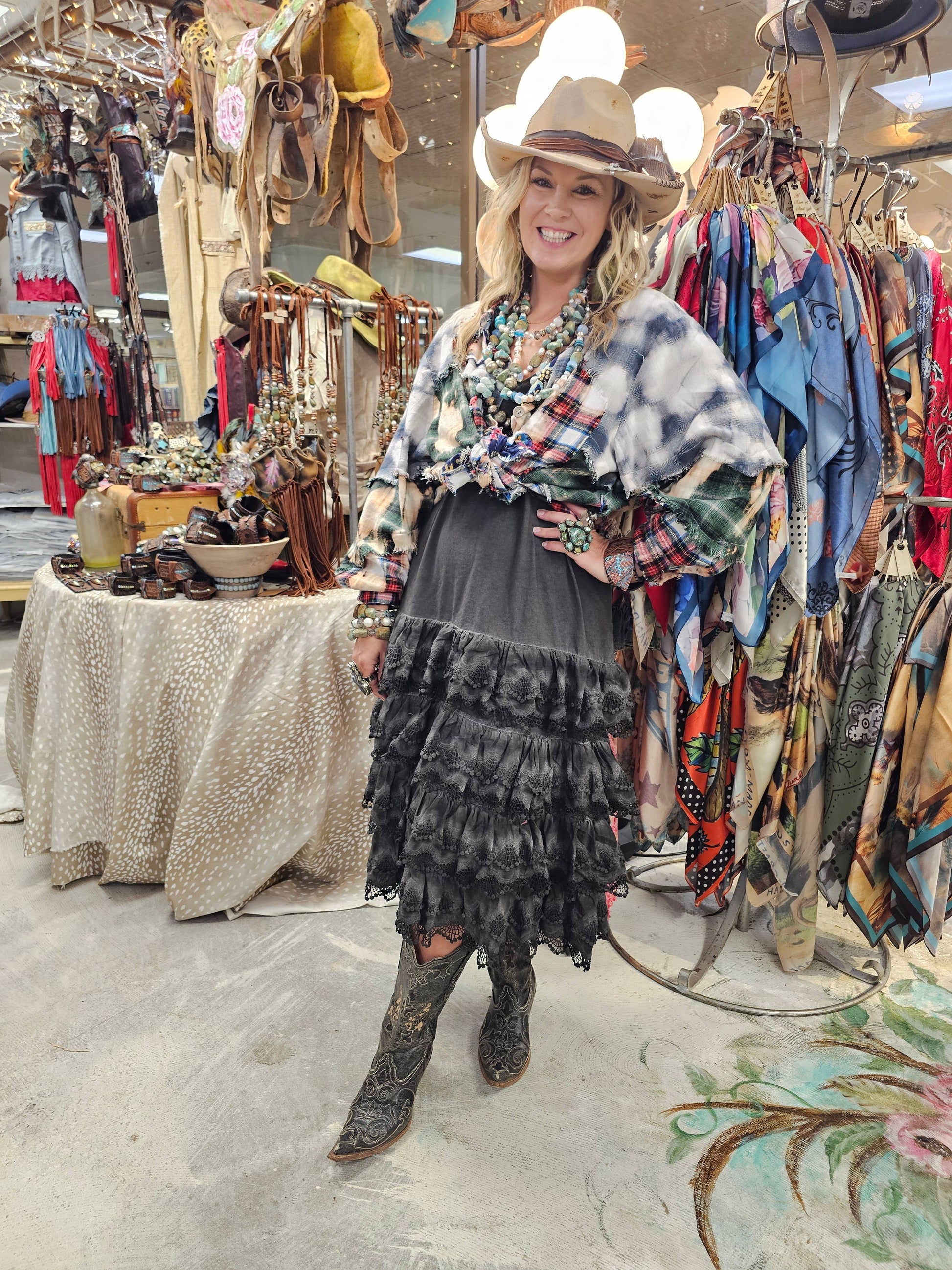 This gorgeous slip dress is a RARE BIRD essential. Made from soft distressed cotton, it has a lived in comfy feel. It is finished with layers of ruffles trimmed with vintage lace and dyed to perfection. Designed to be worn as a dress or your favorite layered piece, the adjustable straps make this a favorite for sure. Available sm and lxl and 3 colors.