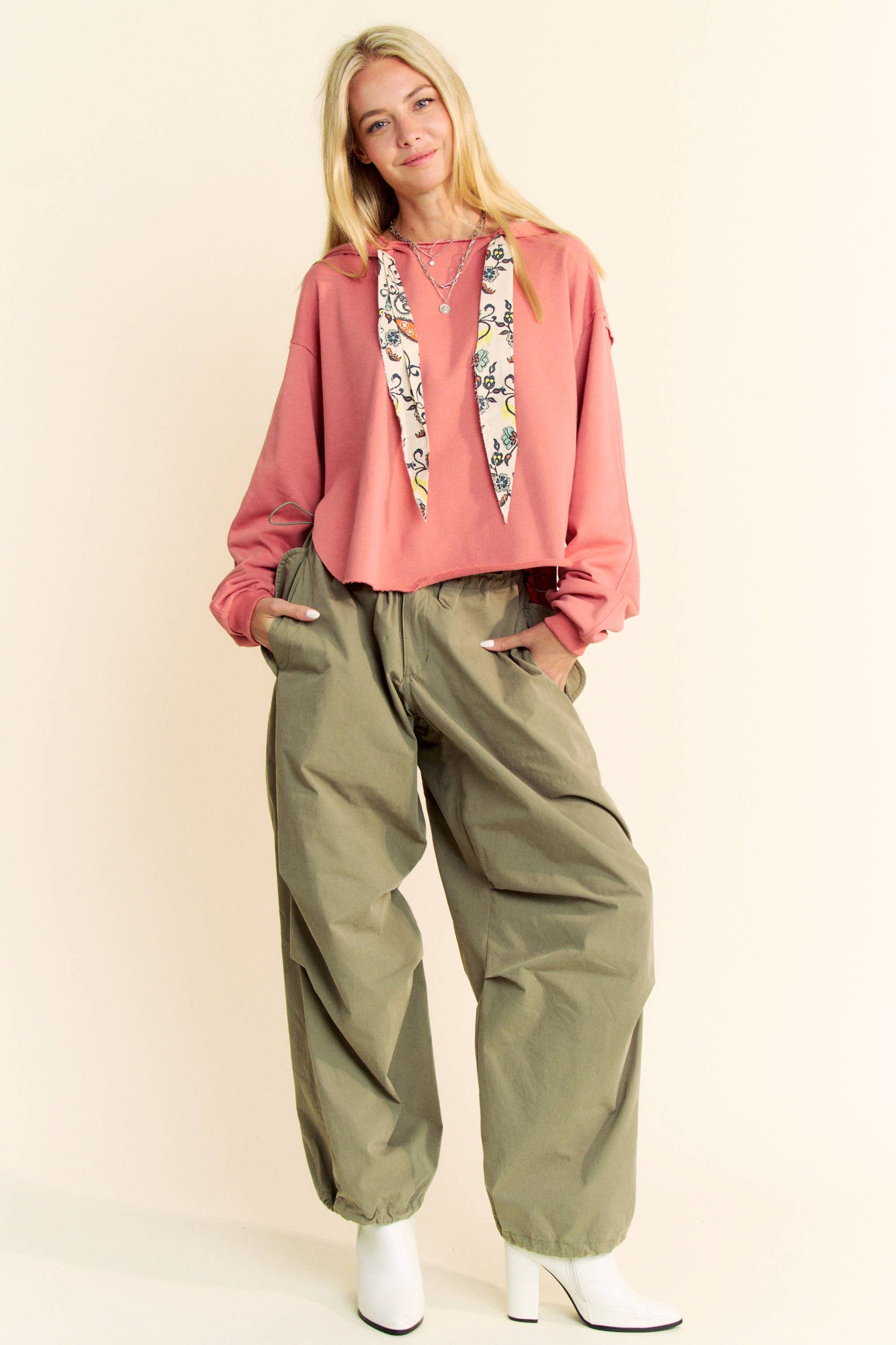 Coral - LONG SLEEVES PRINT TIE LOOSE FIT HOODIE TOP