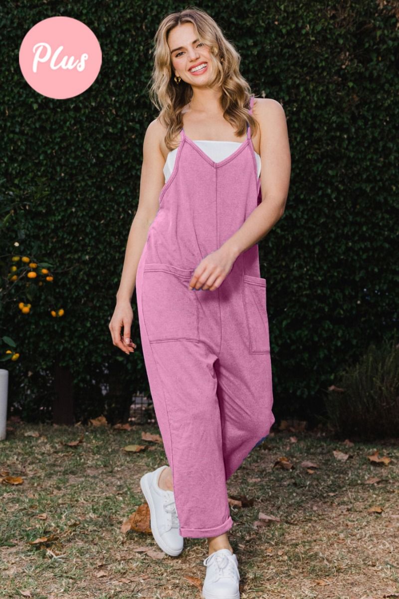 Orchid- Oversized Solid Washed Knit Jumpsuit