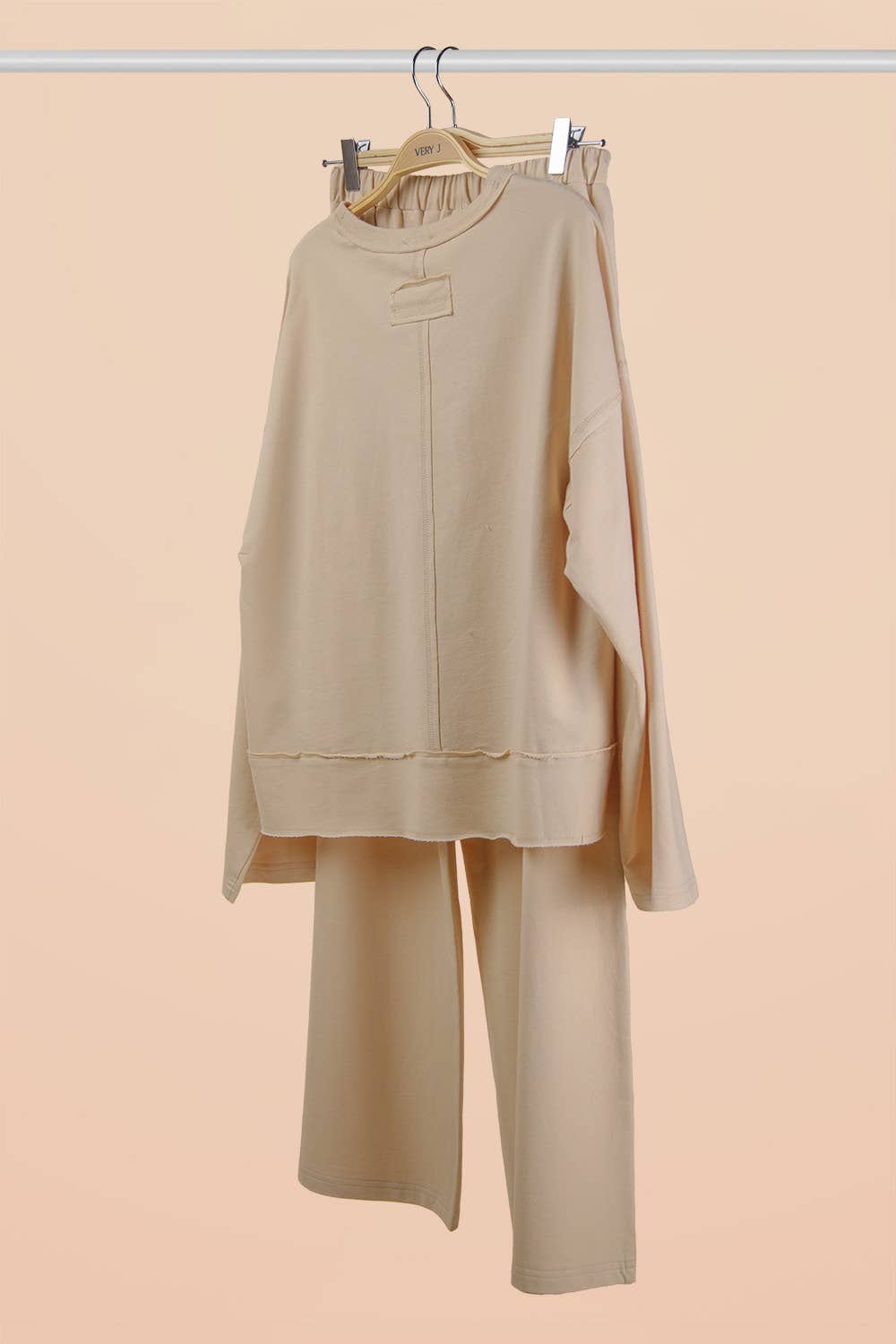Mineral Washed Casual Knit Top & Pants Set - Loungewear TOP - Oversized - Drop Shoulder - Patch Pocket - Long Sleeve BOTTOM - Elastic Waist W/ Drawstring - Side Pockets - Wide