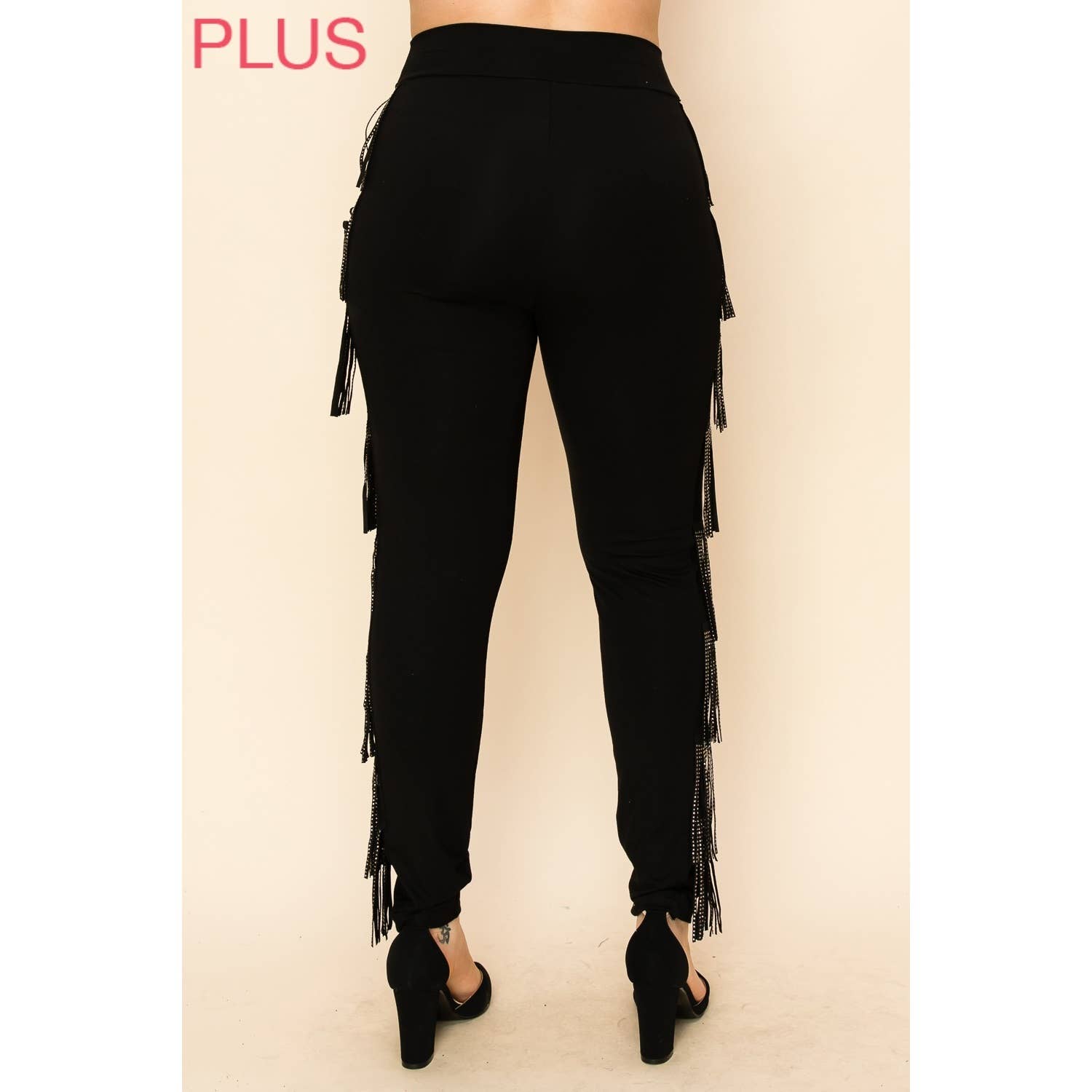 CURVY LEGGINGS WITH STUDDED FRINGES
